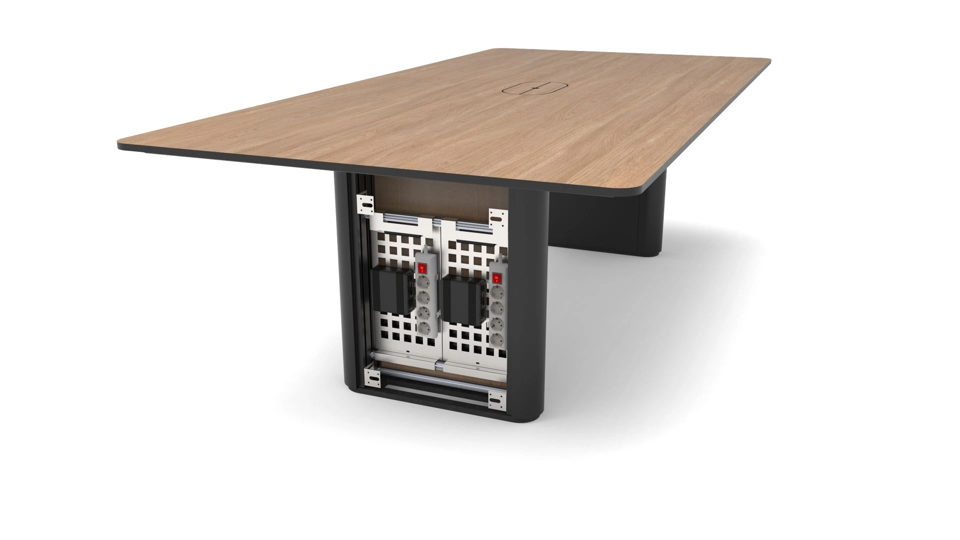 Benen har flera funktioner. Förutom att bära bordet fungerar de som installationszoner och kabelvägar som leder kablage diskret från golv till bordsyta.