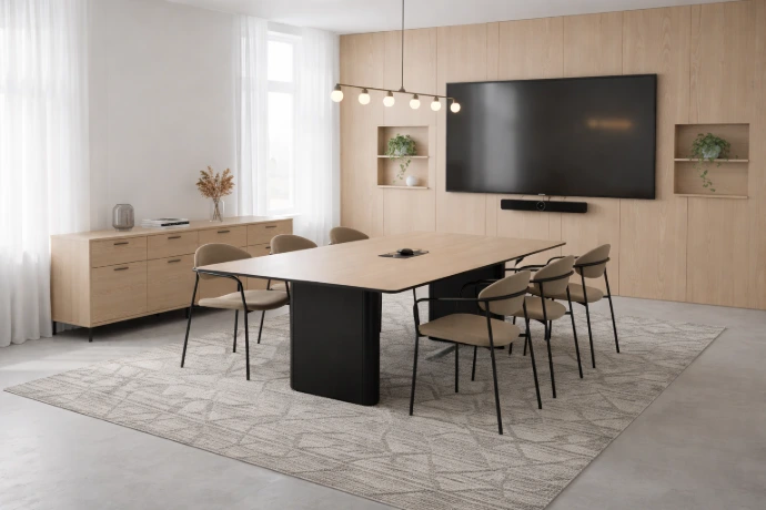 Flextable är utvecklad med cirkularitet i fokus. Istället för att ersätta fullt fungerande resurser gör serien det möjligt att ta tillvara på det som redan finns. Befintlig AV-teknik och bordsskivor kan enkelt integreras i en ny, modern lösning – utan kompromisser i vare sig funktion eller estetik.